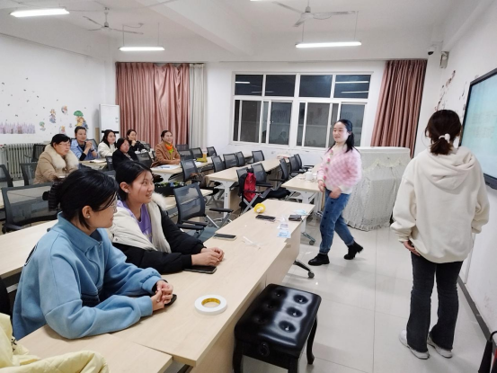 三位学生依次进行说课和讲课的展示,针对学生的表现,老师们依据自己的专业优势分别从教学活动方案的撰写、教学领域的确立、教学过程的设置、教学语言的组织、教学PPT的完善及教师个人的仪容仪表等方面对学生进行了详细的指导。