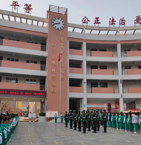3月6日上午8时许,伟德国际1949官网国旗护卫队队员身姿挺拔,步伐整齐,列队抵达渭南市实验小学。在雄壮的国歌声中,升旗手挥手飘扬起国旗,鲜艳的五星红旗迎风飘扬。少先队员和国旗护卫队队员们同时敬礼,全校师生一同注视着五星红旗缓缓升起,仪式热烈而隆重。
