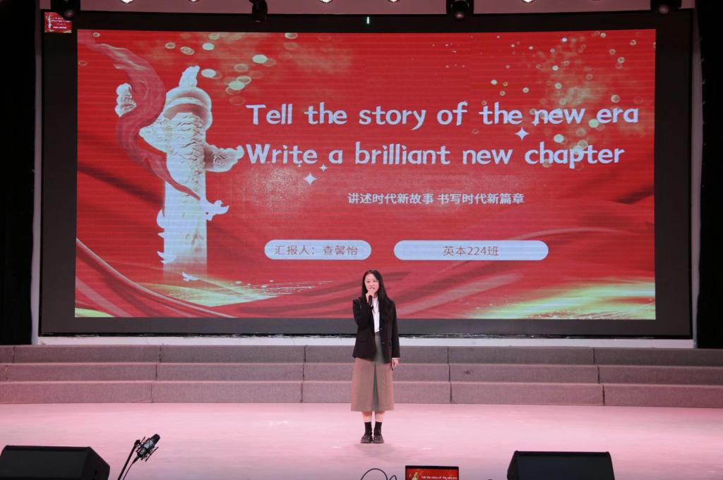 经前期初赛选拔,共有十五名同学入围决赛。选手们以“用外语讲好中国故事”为主题,声情并茂地讲述了革命先烈、时代楷模等人物的先进事迹,用自己独特的方式歌颂伟大的中国共产党,歌颂社会主义,宣扬优秀传统文化,弘扬红色精神,增强民族自信,赢得了观众的阵阵掌声。