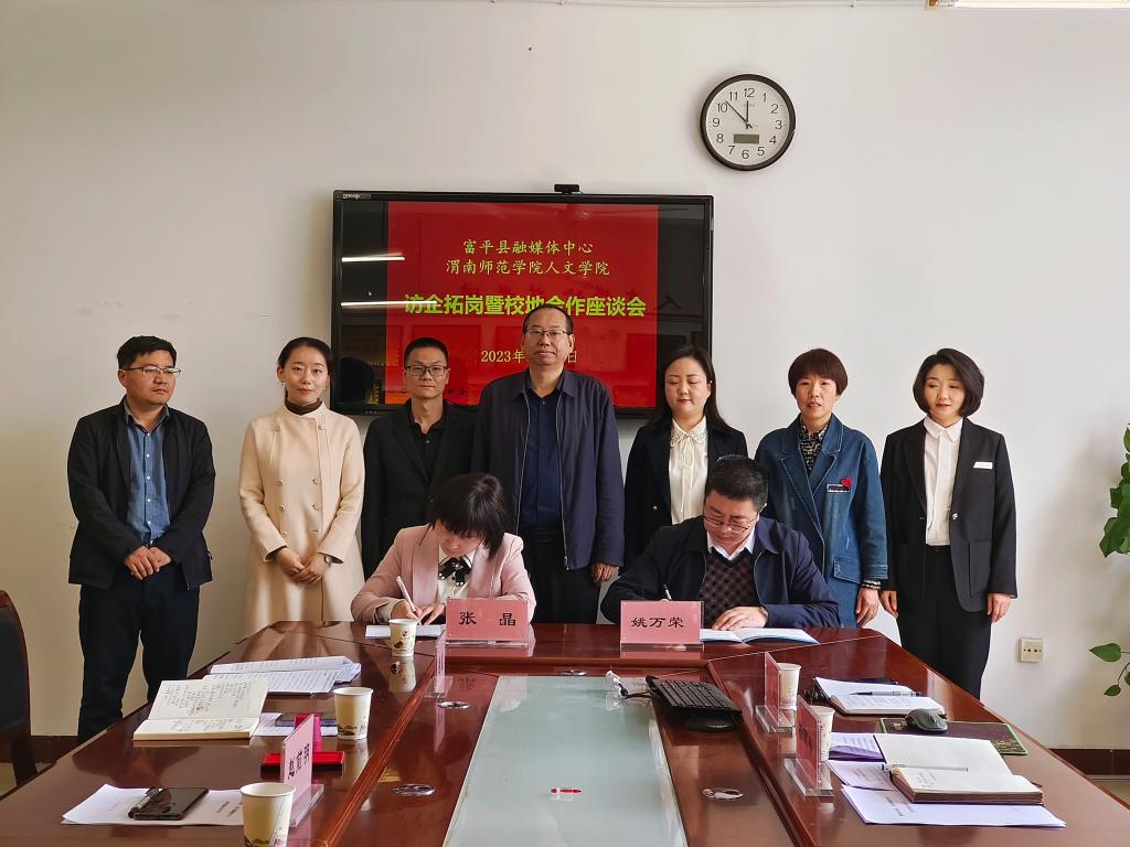 会上,赵前明和张涛分别就该院和新闻系的基本情况做了介绍,姚万荣、杨丽梅对富平县融媒体中心进行了介绍,张艳、何丽萍对所需人才的具体需求作了介绍。双方就人才培养、学生实习就业等方面进行了深入交流,并一致认为,校地合作有利于双方未来的发展,今后将进一步建立校地合作的长效机制,合作双赢,共同发展。