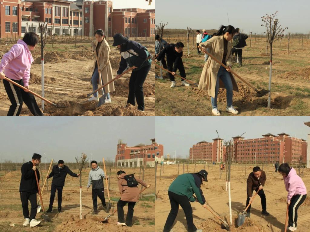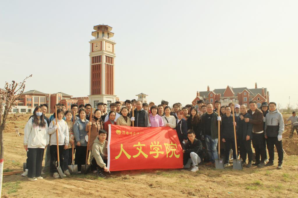 3月15日上午,人文学院处科级干部、全体辅导员、学生代表40余人前往富平校区参加2023年春季校园义务植树活动。