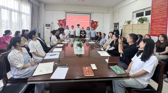 7月1日,外国语学院党总支举行“七一”党员重温入党誓词暨新发展党员宣誓仪式,外国语学院全体行政人员、新发展党员、发展对象代表参加。仪式由党总支书记武江波主持。
