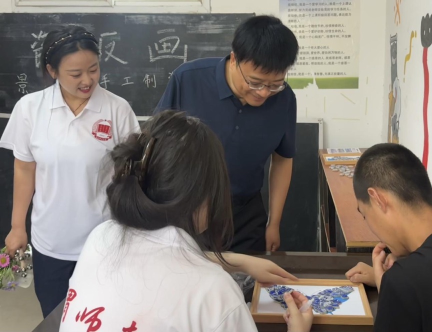 座谈会上,常青林认真听取了实践团的活动进展汇报,充分肯定了队员们的辛勤付出与教学成果,并就师范生参与支教助残实践的意义提出三点要求:一是增强时代责任感,助力深化对“尊师重教 至诚报国”校训的领悟。通过与特殊儿童互动,学会包容理解、涵养耐心爱心,为未来投身教育事业奠定重要基础。二是筑牢教育初心,涵养教育情怀,深化对“爱”的理解,推动践行“乐教爱生,春风化雨”的教风。三是提升教育实践能力,促进师范生遵循“好学深思 明辨笃行”的学风,积极探索适配帮扶对象的教学方法。最后,常青林特别强调实践团师生注意防暑降温与自身安全,鼓励大家持续发挥专业优势,让实践活动更具深度与温度。
