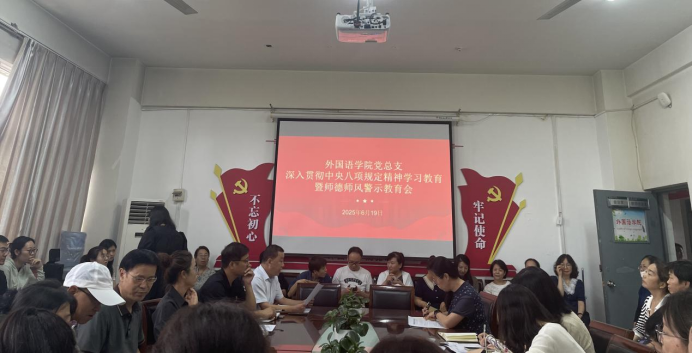 为贯彻落实党的二十届三中全会精神,巩固拓展学习贯彻习近平新时代中国特色社会主义思想主题教育成果,巩固深化党纪学习教育成果,锲而不舍深入贯彻中央八项规定精神学习教育,推进作风建设常态化长效化,在学校党委的带领下,外国语学院党总支在全院内认真组织,开展系列富有成效的学习活动,取得了阶段性的成果。