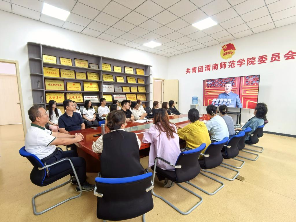 为铭记历史、缅怀先烈,大力弘扬伟大抗战精神,9月3日上午,校团委组织校团委全体人员、各二级学院团委书记、校学生会主席团及附属组织团学干部,在渭师青年之家会议室集中观看纪念中国人民抗日战争暨世界反法西斯战争胜利80周年大会直播。观看结束后,各团学干部纷纷畅谈自己的心得体会。