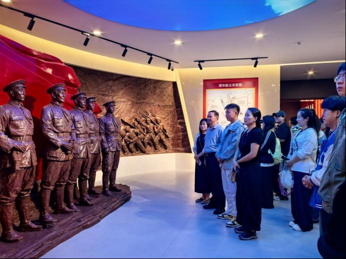 9月16日,大学科技园与美术学院共同组织师生赴陕西省渭华起义纪念馆,举办以“红色文化教育+展馆艺术设计”为主题的双创学习实践活动。