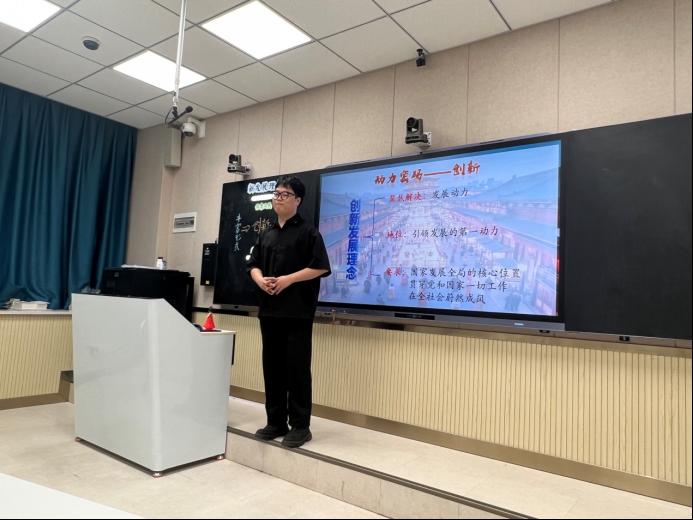 思想政治教育专业22级学生杨子涵同学展示了五分钟说课和十分钟模拟授课。赵亚妮从说课、讲课两个方面,就教材分析、教学目标、教学方法、板书设计等环节进行了细致的点评,就教学内容的“承上启下”、教学方法的议题式教学 “一例到底”、教学课件PPT的设计等方面提出了许多建设性的意见和建议。