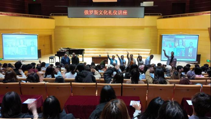 10月14日晚,莫斯科艺术学院举办俄罗斯文化礼仪专题讲座。莫斯科国立师范大学中俄统筹中心主任叶莲娜·维亚切斯拉夫娜·马克耶娃主讲,教师成瑞璞担任翻译。