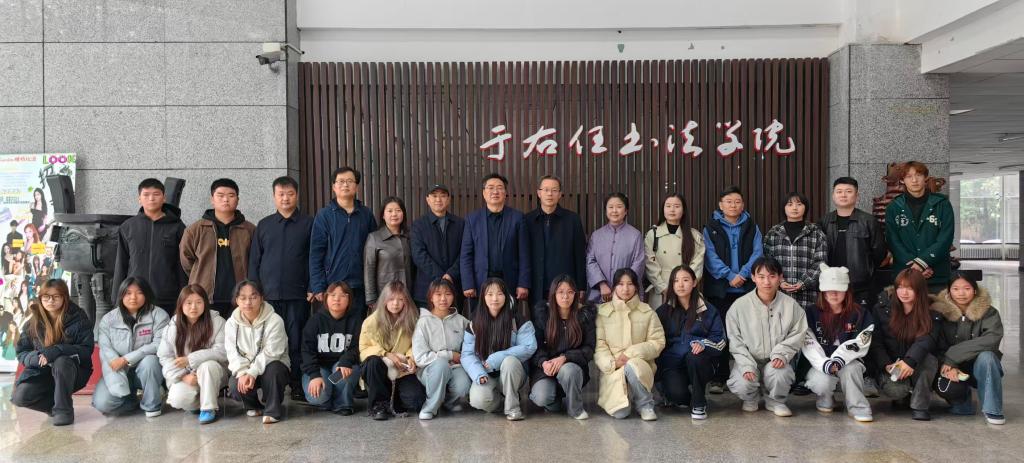 10月24日,美术学院党总支书记周德锋、副院长石洁带队,欢送18名25级书法学专业学生前往咸阳师范学院于右任书法学院,开启为期一年的交换学习之旅,并与咸阳师范学院于右任书法学院党委书记计谋远、副院长徐淑坤及辅导员班主任开展座谈交流。