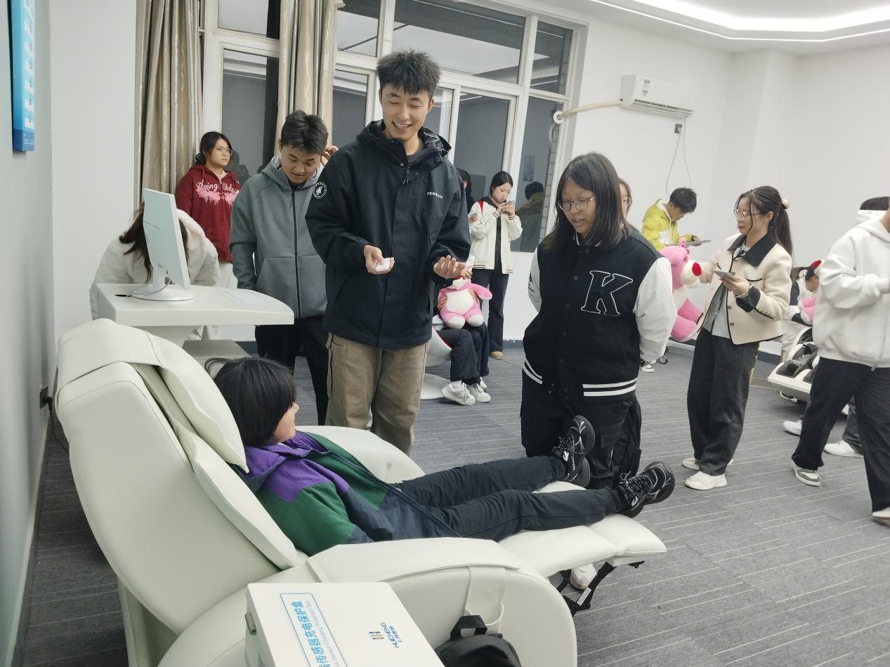 活动期间,大学生心理健康教育指导中心专职教师程芮与大学生心理健康协会骨干成员聚焦学生心理需求,以“实地参观+互动体验+团体辅导”模式,向来访同学们详细介绍心理健康教育中心的服务职能、师资队伍、功能部室、各类校级活动,带领同学们体验心理沙盘、音乐放松训练、情绪宣泄器材、智能体感互动宣泄仪、VR等专业设备。参观体验结束后,中心还组织了一系列丰富多彩的团体心理辅导活动。