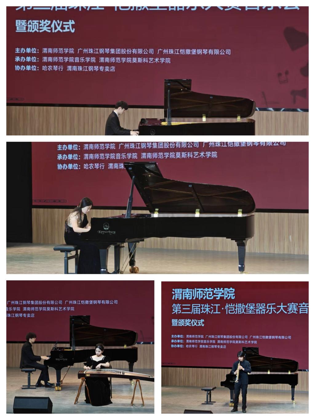 11月12日,第三届珠江·恺撒堡器乐大赛音乐会暨颁奖仪式在伟德官网举行。广州珠江钢琴恺撒堡公司党委副书记、总经理李富龙,伟德官网音乐学院党总支书记白锐,音乐学院副院长逯克刚,渭南市哈农琴行总经理李哲,渭南珠江钢琴专卖店经理张卓等出席活动 。