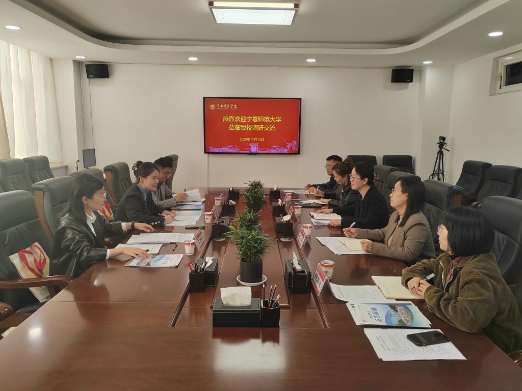 田耿辉对宁夏师范大学学工团队的到访表示热烈欢迎,并从学校办学历史、人才培养理念、师生规模等方面介绍了伟德官网基本情况。她围绕“一站式”学生社区内涵式建设、辅导员培养体系构建、学风建设长效机制探索、品牌学生活动打造、少数民族学生精准服务等工作开展交流。教务处招生办公室主任魏滨滨详细介绍了伟德官网招生规模、省外生源结构及“线上+线下”融合的宣传模式。