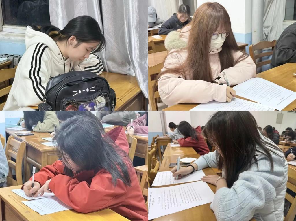 晚上7时30分,比赛正式开始。赛场秩序井然,同学们沉着应考、认真作答,展现出扎实的语言功底、规范的书写习惯与良好的专业素养,充分体现了外院学子丰富的知识储备与沉稳的应赛心态。