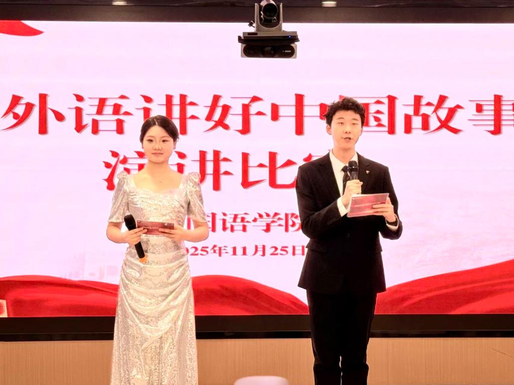 经过初赛选拔,17名选手晋级决赛。他们围绕中国传统文化、非遗技艺、感动人物、数字经济等主题,运用英语、朝鲜语、日语等语言进行精彩演绎。选手们在内容深度与表达技巧上均有显著提升:有的以浙江年糕展现饮食文化,有的借茶道精神传递东方哲学,有的通过皮影戏呈现非遗魅力,还有的以四合院为载体阐释建筑智慧,充分展现了外院学子用外语传播中华文化的创新实践。