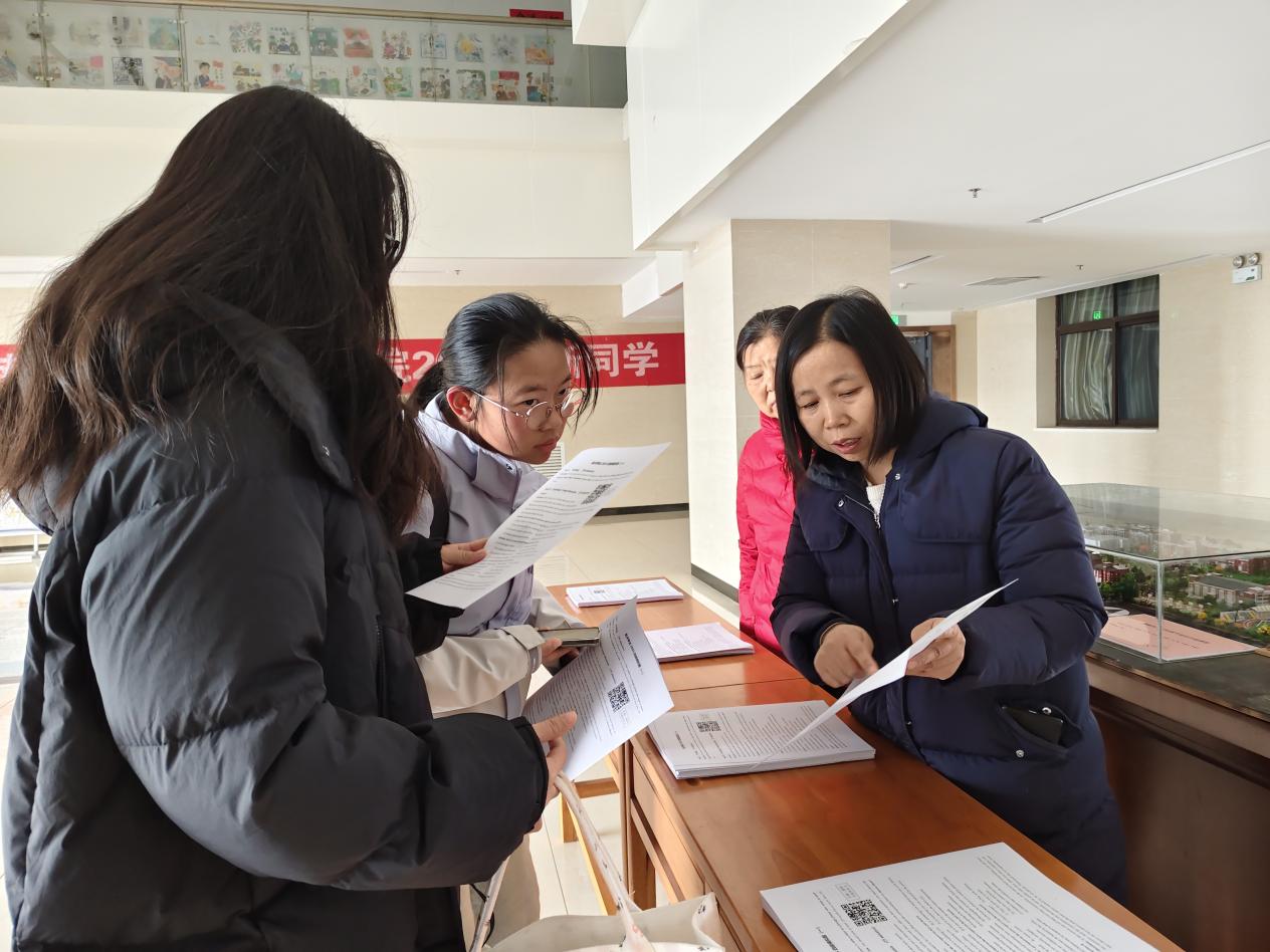 大课间,提前知讯的同学们来到现场,工作人员一边询问“四级还是六级试题”?一边根据需求把试题送到同学们手中,同时指出在“图书馆公众号-数字资源-起点考试网-四六级模拟试题”上提交可以检测对错,并有详细解析;除了线下发放,各位辅导员让同学们拍上“起点考试网”模拟试题路径宣传册,发往同学群,让未能到场的同学也可自行下载使用,确保惠及每一位有需要的学子。各位老师亲切地叮嘱大家要科学规划复习时间,注意劳逸结合,以最佳状态迎接即将到来的考试。