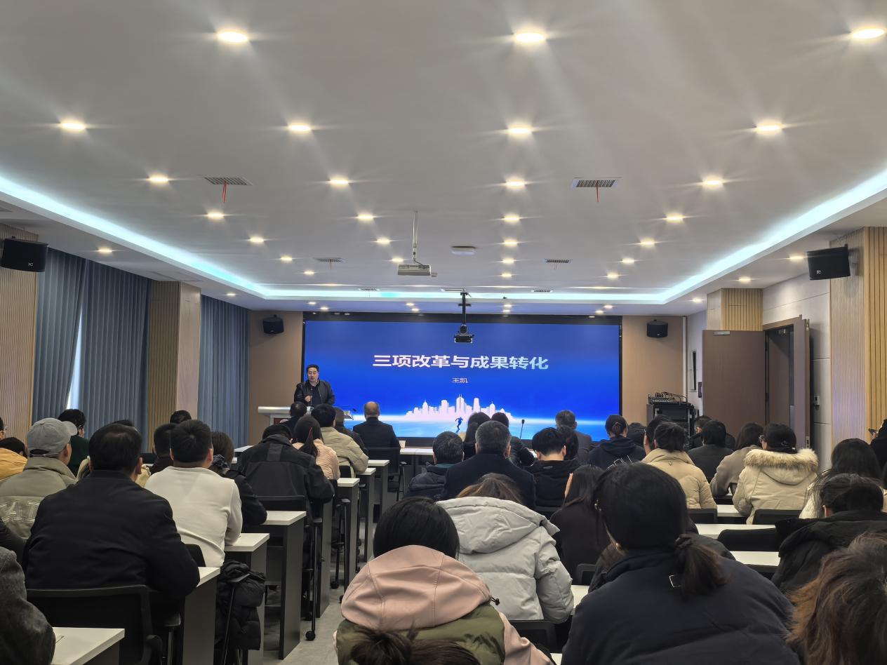 12月10日,大学科技园组织开展“三项改革”暨科技成果转化专题培训会,陕西省技术经理人协会秘书长,高级技术经理人王凯做主题讲座,副校长卢爱刚出席并主持。