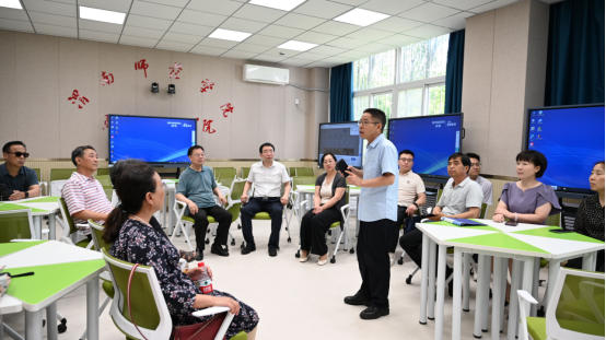 党课结束后,张守华和离退休老党员一起参观了教育科学学院的文化长廊、特色阅读室,一同体验了马克思主义学院的智慧录播室。通过参观体验,离退休老同志切身感受到了学校近年来的发展变化,纷纷表示对学校的未来发展充满信心。