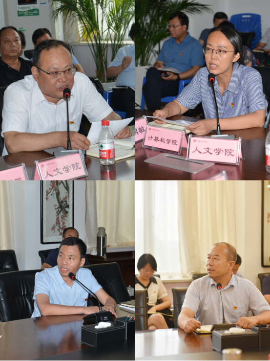部分校级领导班子成员围绕主题教育根本任务,立足工作岗位,结合理论学习所思所悟,谈学习收获和体会,以及下一步的工作设想。人文学院党总支、计算机学院党总支、发展规划处、教务处主要负责同志围绕各自部门主题教育开展情况作了交流汇报。