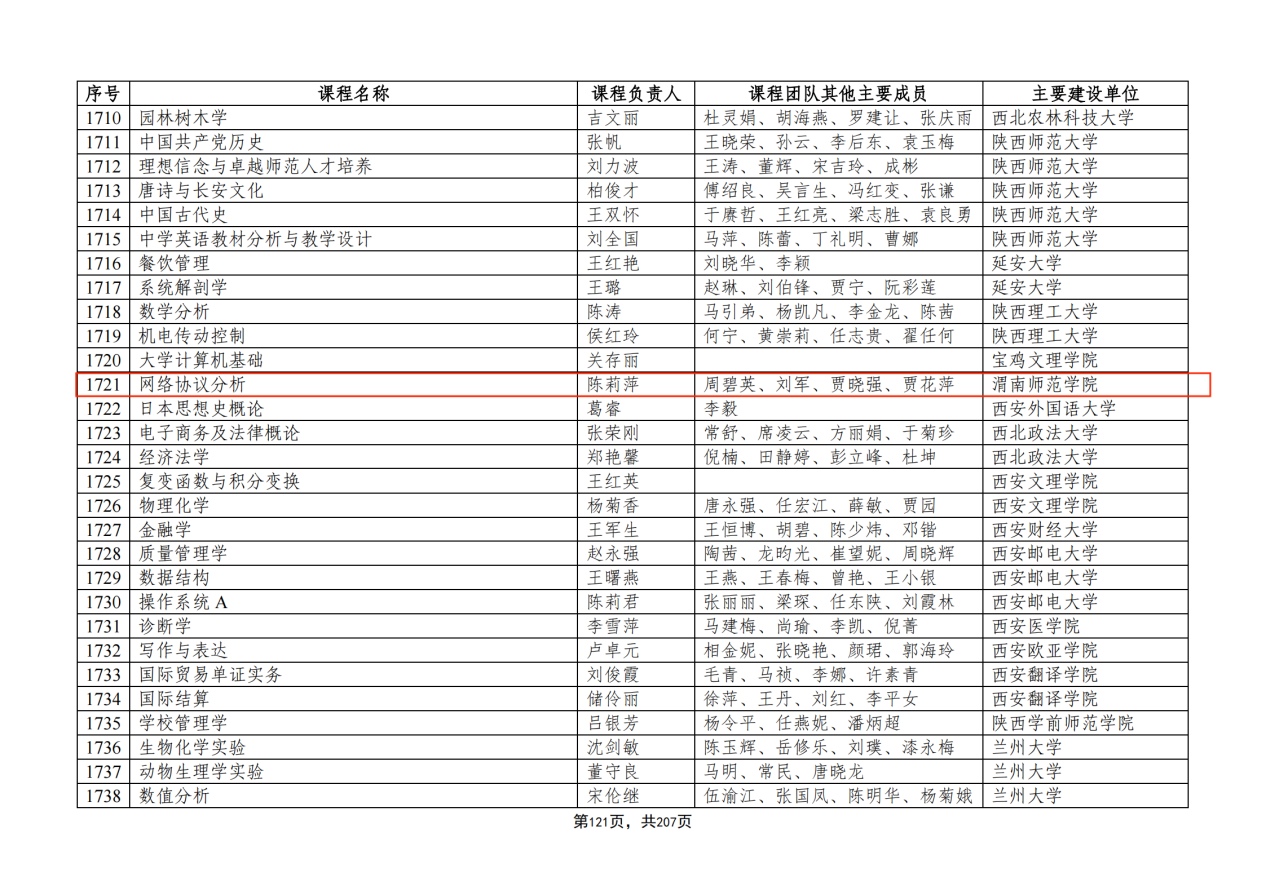 近日,教育部公布了第二批国家级一流本科课程认定结果。伟德官网陈莉萍教授主持的课程《网络协议分析》入选,这是伟德官网继《创业基础》课程被认定为首批国家级社会实践一流本科课程后,学校课程建设获得的又一重要成果。