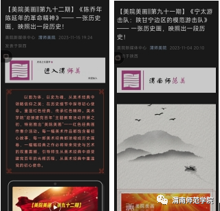 持续开展 “美院美画”学习党史系列活动,以画为体,以史为魂,从美术经典中领略信仰之美,在历史细节中探寻初心使命,目前已开展活动92期,受到师生广泛好评。