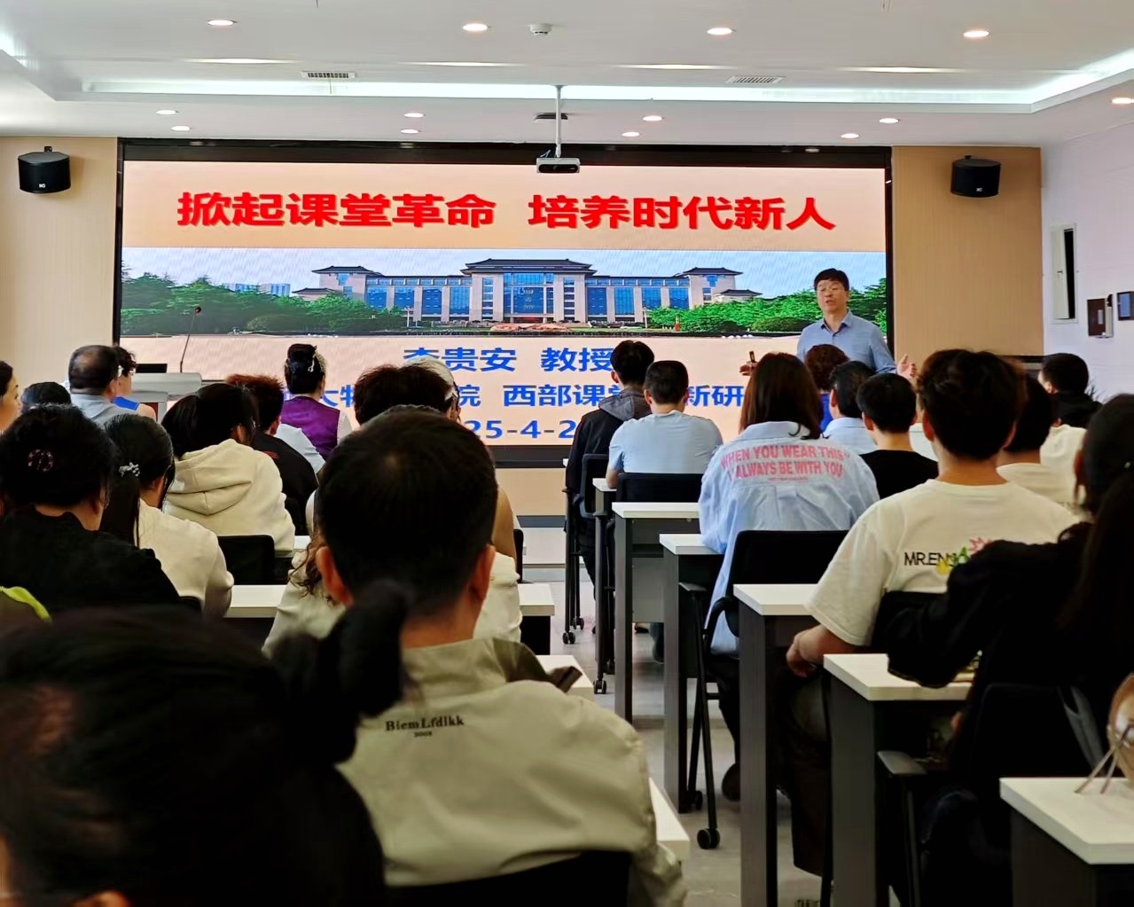 4月25日下午,陕西师范大学二级教授、博士生导师、物理学与信息技术学院院长、西部课堂创新研究院院长李贵安应邀为伟德官网师生作“掀起课堂革命,培养时代新人”的专题报告。报告由教学质量监控与评估处处长白秀英主持。
