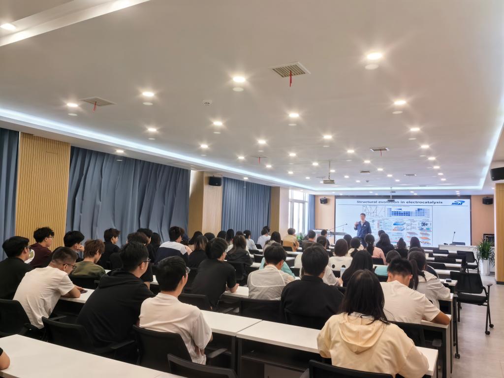 夏宝玉教授围绕质子交换膜系统,从催化剂设计、质子交换膜、阳极反应等维度,深入剖析电催化CO₂转化的失效问题,系统阐述实现高效稳定电催化CO2转化的设计思路与方法。报告结束后的互动环节,面对师生踊跃提问,夏教授一一耐心解答,还针对青年教师科研发展和学生成长给出实用建议。夏教授的报告内容充实、形式赏心悦目、讲解鞭辟入里,令在场师生收获颇丰。(通讯员 杨帆 杨珊 审核人 刘展晴)