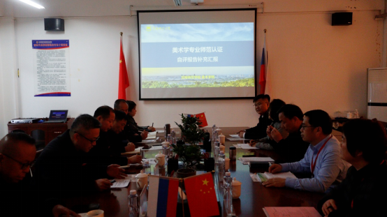 当天上午,5个专业分别召开了专业层面见面会。会议由各专家组组长主持。教育科学学院院长李西彩教授、物理与电气工程学院院长张修兴教授、化学与材料学院院长刘展晴教授、外国语学院院长李海荣副教授、美术学院副院长石海彬副教授分别就教育技术学、物理学、化学、英语、美术学专业自评报告作了补充说明。