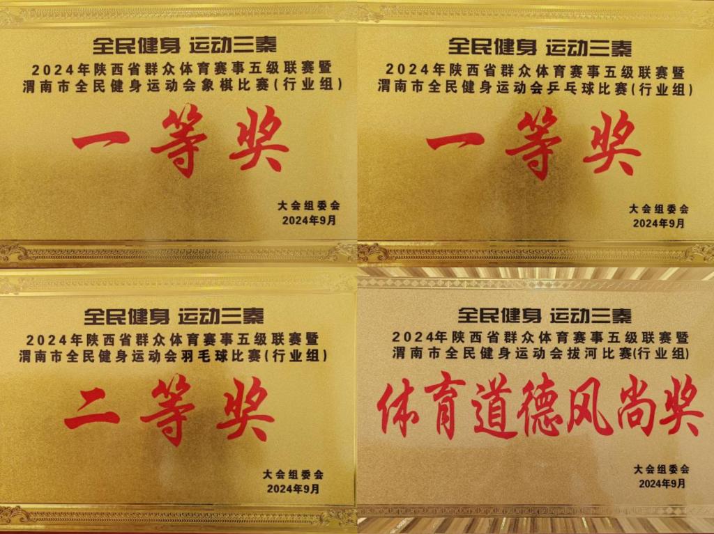 据运动会组委会赛事进度安排,9月19日至21日,乒乓球和羽毛球行业组比赛在华阴市体育馆举行。队员们赛场上团结协作、顽强拼搏、锲而不舍、全力以赴,经过三天鏖战,伟德官网乒乓球队以团体总分13分的优异成绩获得第一名;羽毛球代表队获得团体第二名;9月24日,伟德官网象棋代表队七战全胜,场分14分,以压倒性优势获得渭南市全民健身运动会行业组象棋比赛冠军;9月26日,拔河比赛于在渭南市体育馆举行,伟德官网获得体育道德风尚奖。