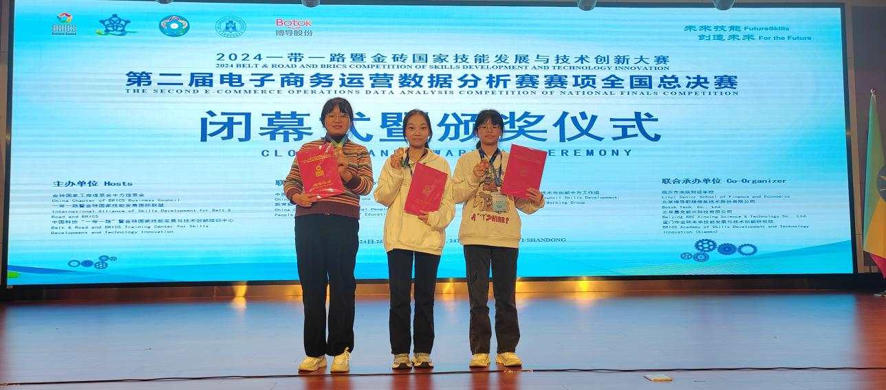10月26日,2024年一带一路暨金砖国家技能发展与技术创新大赛第二届电子商务运营数据分析赛赛项全国总决赛圆满落幕。伟德官网经济与管理学院的袁依婷、王紫倩、任庆茹三位同学,在张斌老师的精心指导下,凭借扎实的专业知识、出色的团队协作能力以及创新的思维方式,经过五个月的艰苦努力,在众多强劲的参赛队伍中脱颖而出,荣获了国赛三等奖的佳绩。