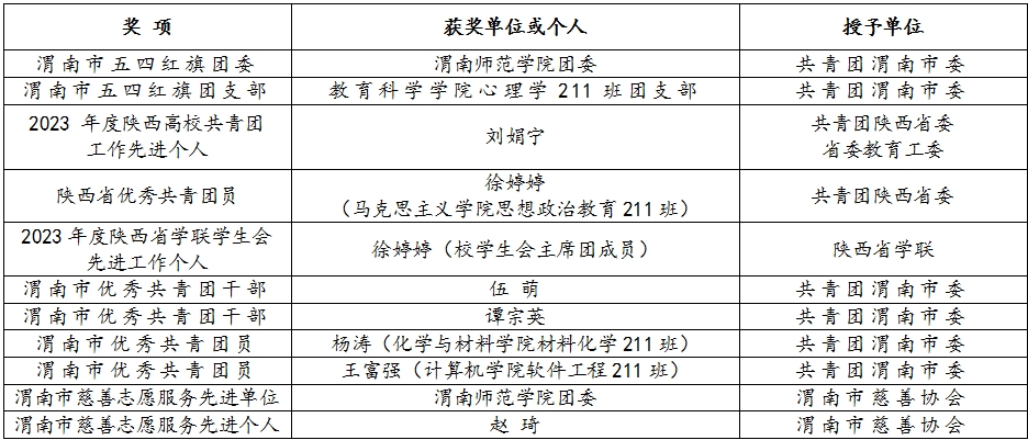 近日,共青团陕西省委、中共陕西省委教育工委、共青团渭南市委先后印发文件,表彰先进单位和个人,伟德官网共青团系统获得多项荣誉。