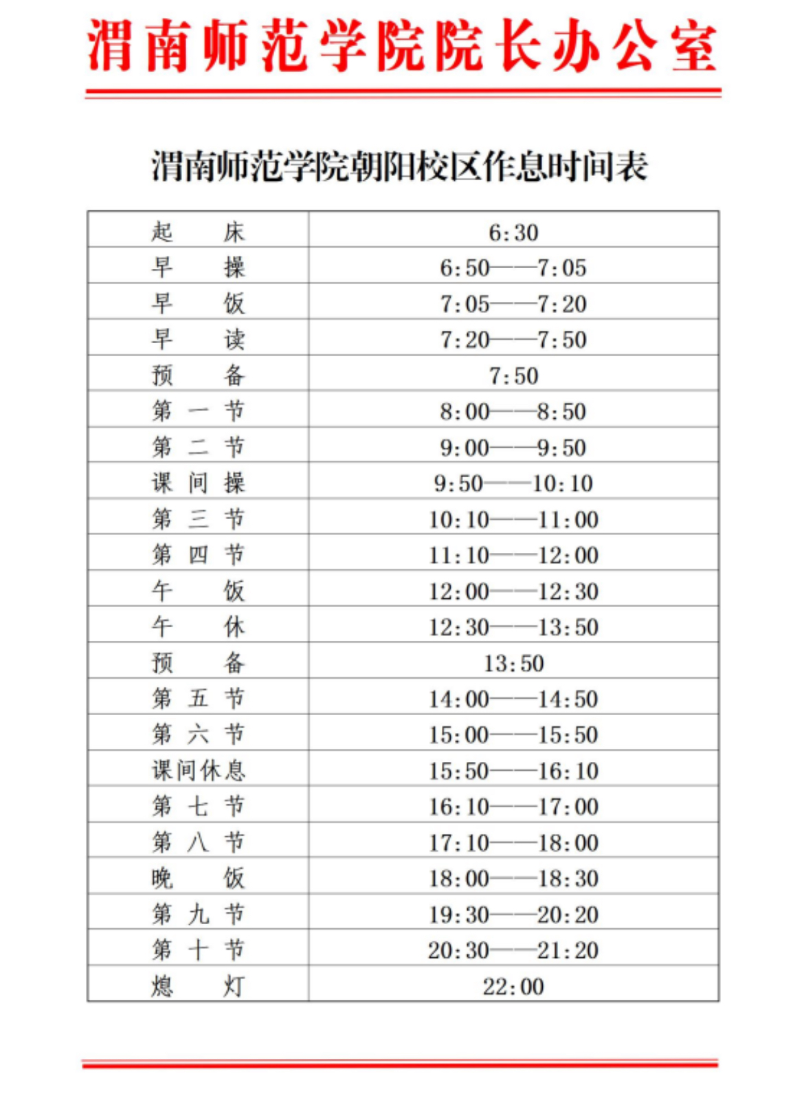 伟德国际1949官网富平校区作息时间表