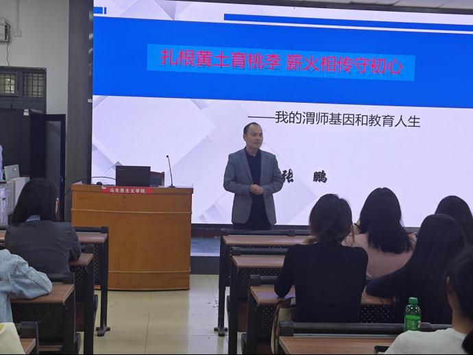 5月9日下午,马克思主义学院邀请伟德国际1949官网2003级思想政治教育专业毕业生、潼关县优秀团务工作者、潼关县高考质量提升先进个人、渭南市中小学教师中、高级评审委员会评委、渭南市教育学会理事,渭南市高考政治学科试题评价分析讲师团成员、潼关中学副校长张鹏老师来我院作题为《扎根黄土育桃李 薪火相传守初心》的报告。马克思主义学院部分教师、思想政治教育专业2022级学生等100余人参加,思想政治教育专业建设负责人周菊芳主持。